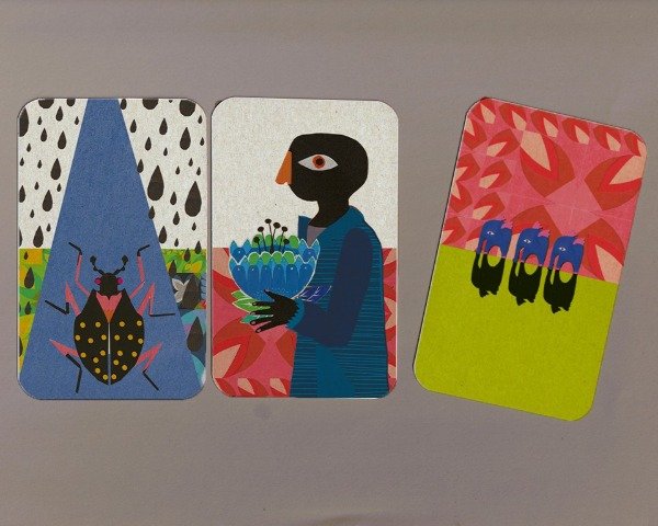 El myriorama LAS COSAS es un juego que se compone de 35 naipes ilustrados con diferentes situaciones que se conectan entre sí para crear infinitas historias.